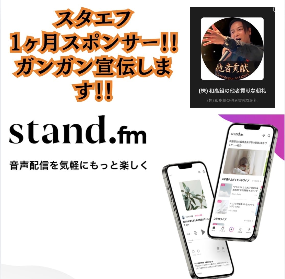毎朝発信してるスタエフで1ヶ月 約1分 熱を込めて広告発信致します。